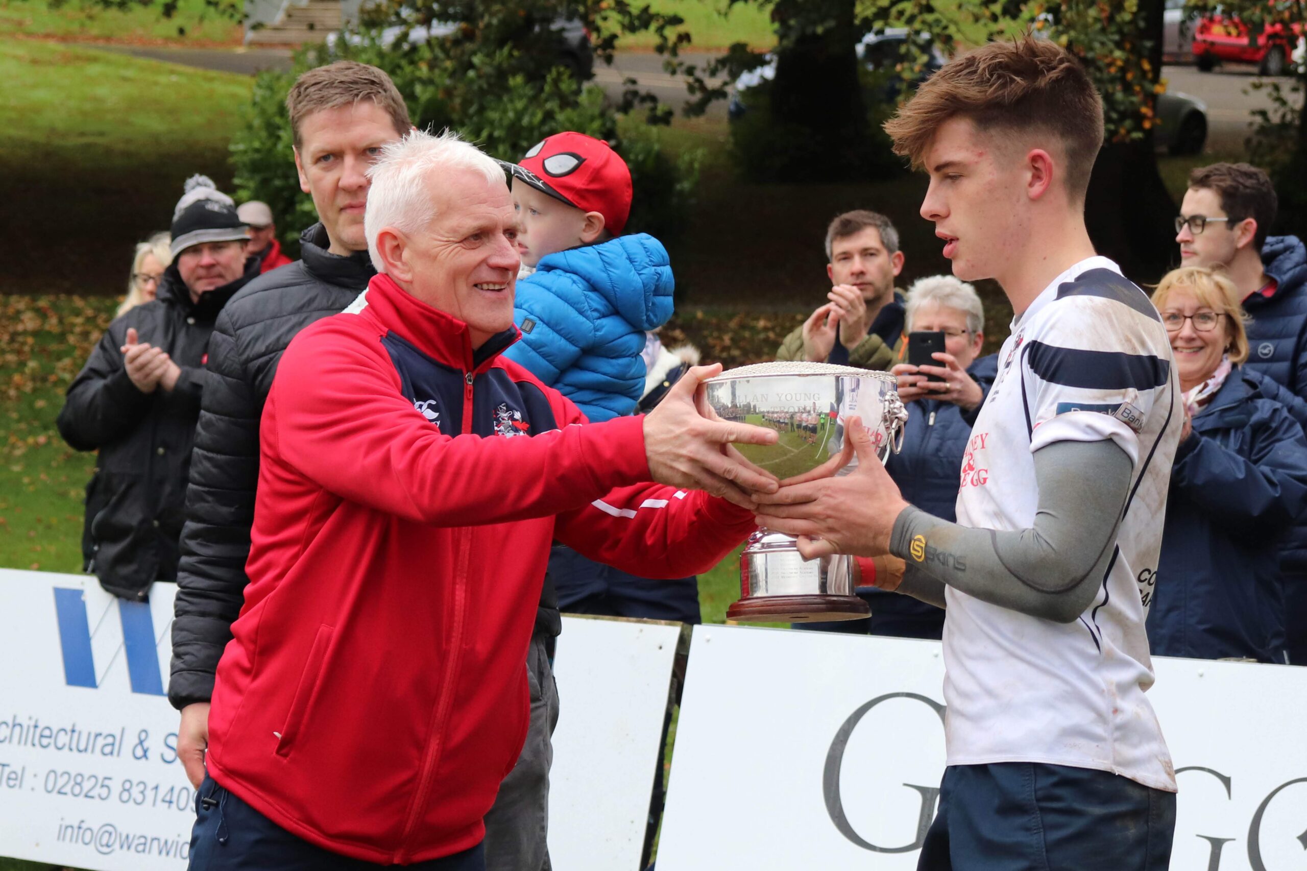 The 1st XV won today’s game, 22 – 14, and the trophy was presented to winning captain, Matthew Corr, by Robert Young. He congratulated the players for an outstanding game of rugby, played with passion, commitment and sportsmanship by two well matched teams.